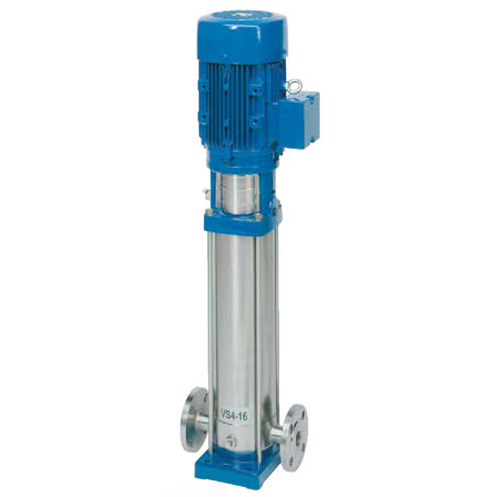 Bomba centrífuga multicelular vertical en acero inoxidable, con bocas de aspiración e impulsión en línea, silenciosa y de óptimas prestaciones, muy adecuada para aplicaciones domésticas, industriales, grupos de presión, sistemas de riego, equipos de lavado, etc.